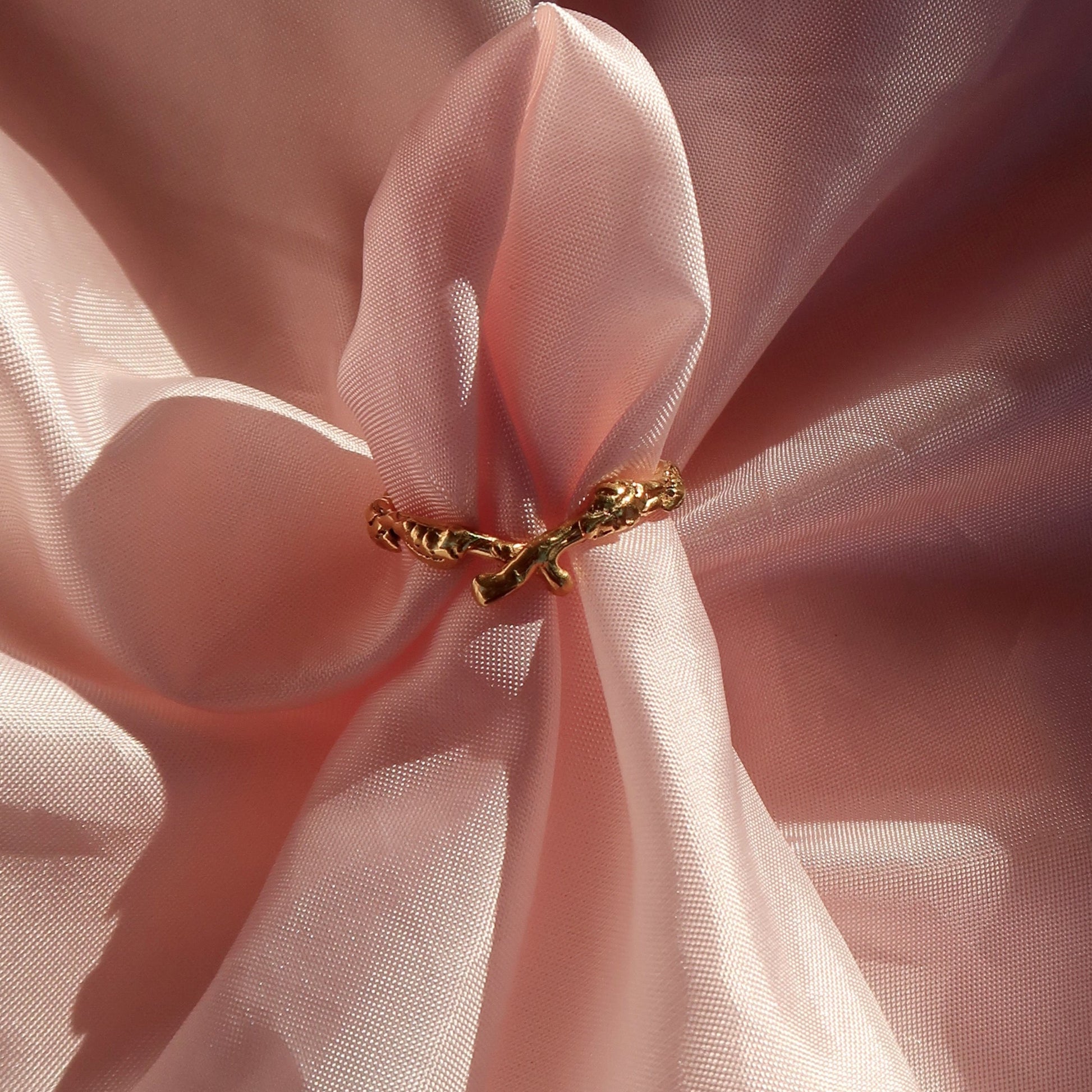 Nestle the textured Arched Branch Ring under your engagement ring for a whimsical touch. Featuring overlapping branches and leaves, the ring's small arch adds a unique detail. Simple yet playful, this ring is perfect for nature lovers.