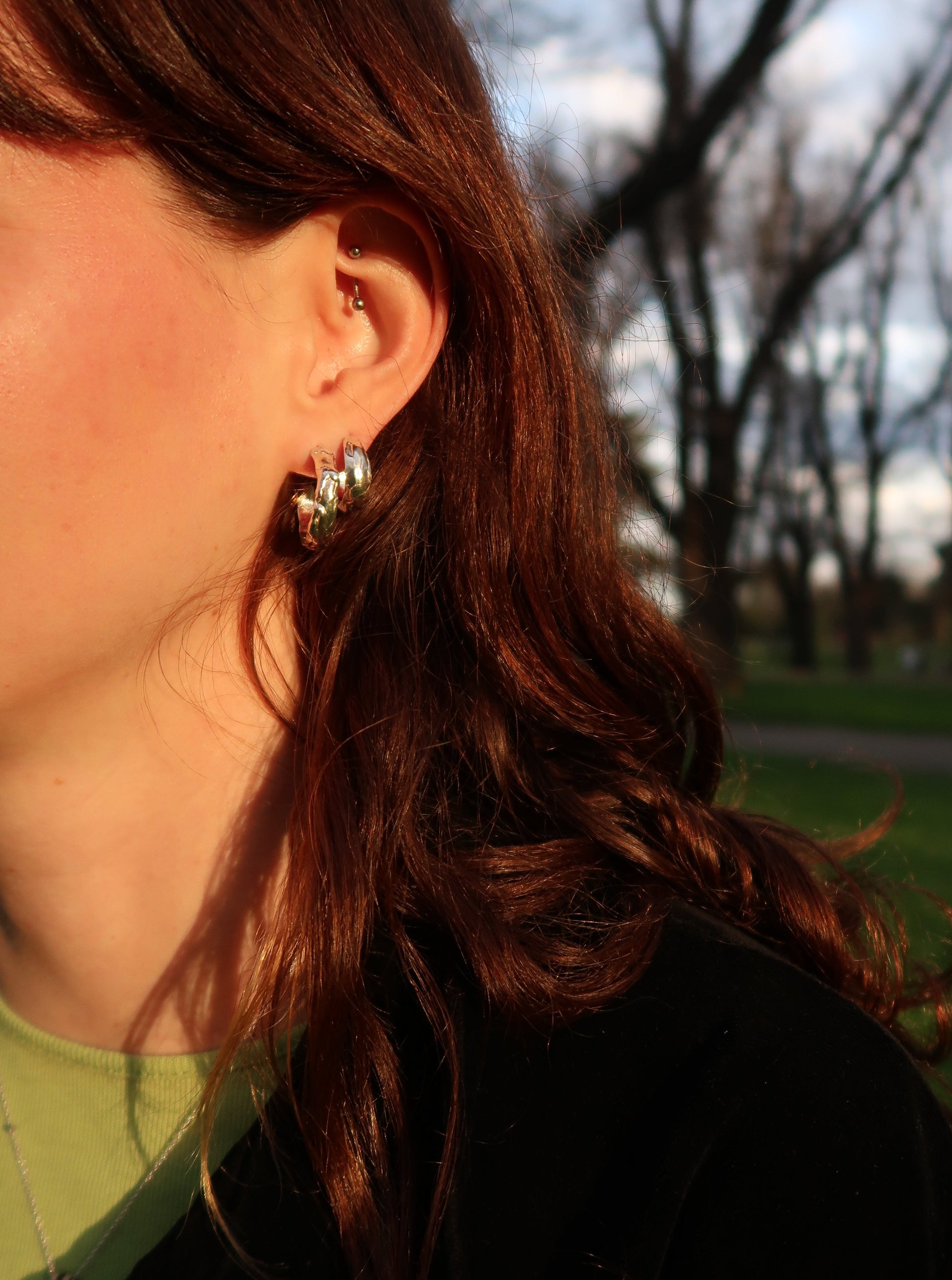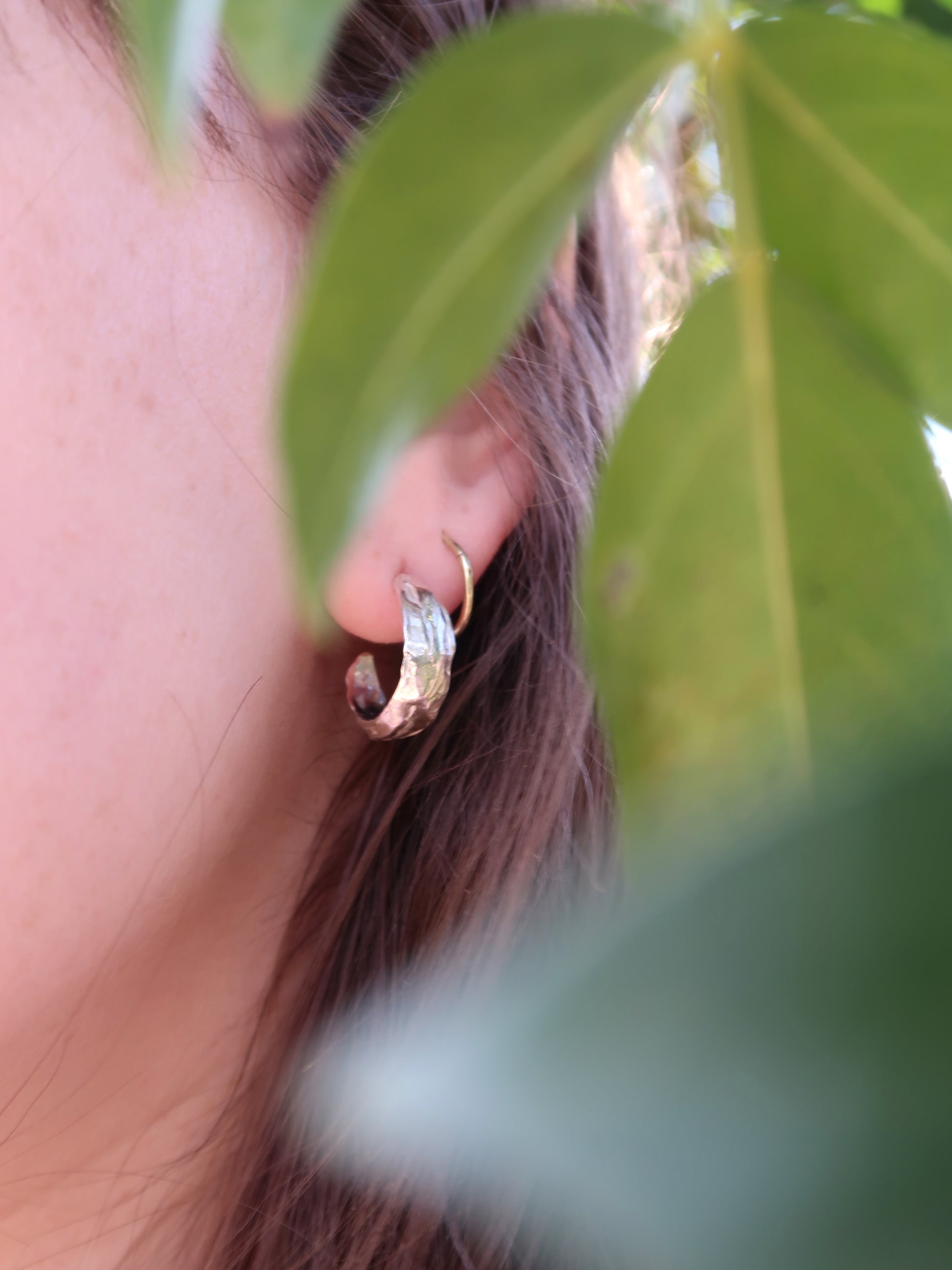 A light-weight, easy to wear everyday hoop. So comfortable you'll want to wear them everywhere! A twist on a classic style with organic, goopy detailing.