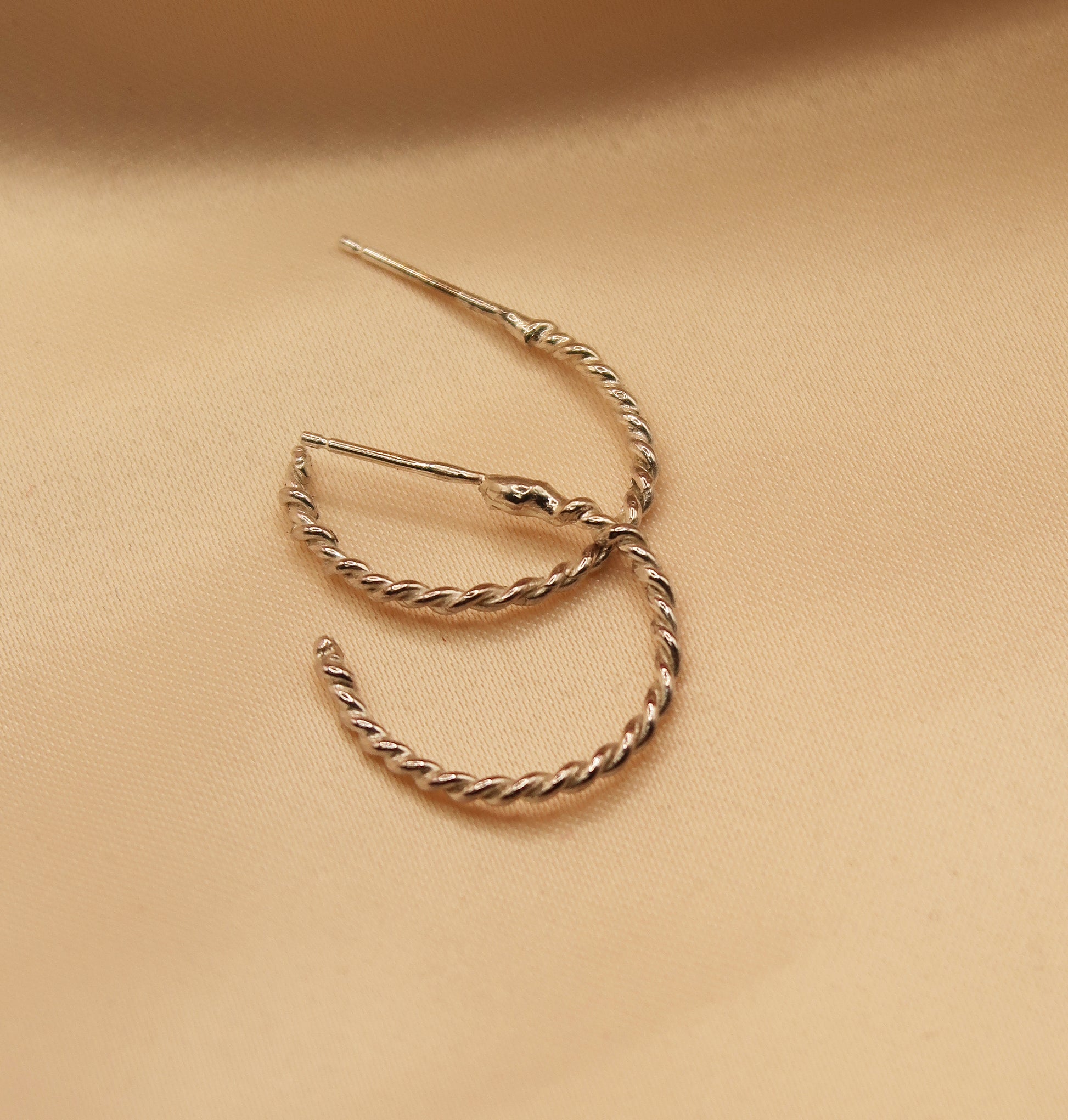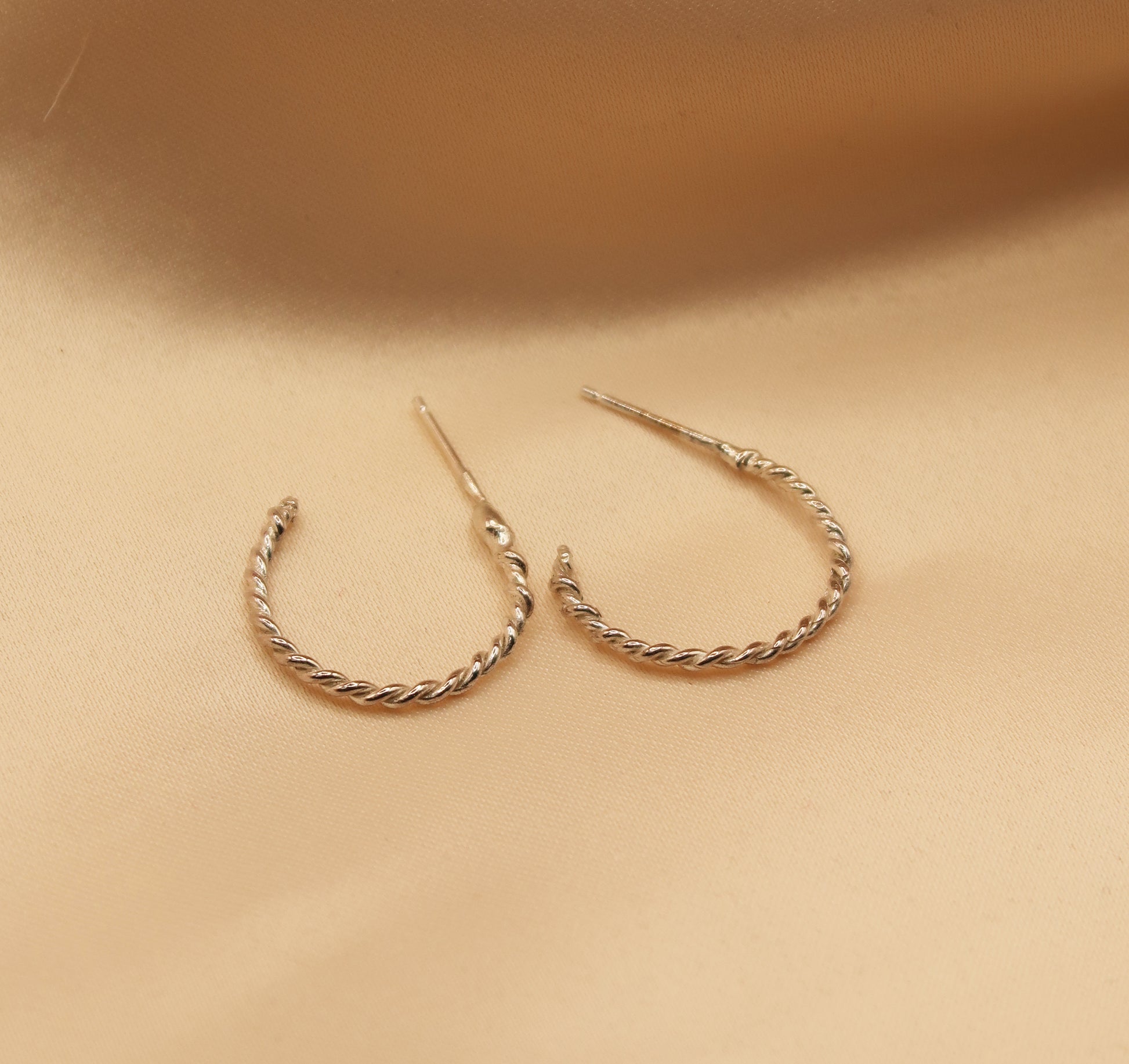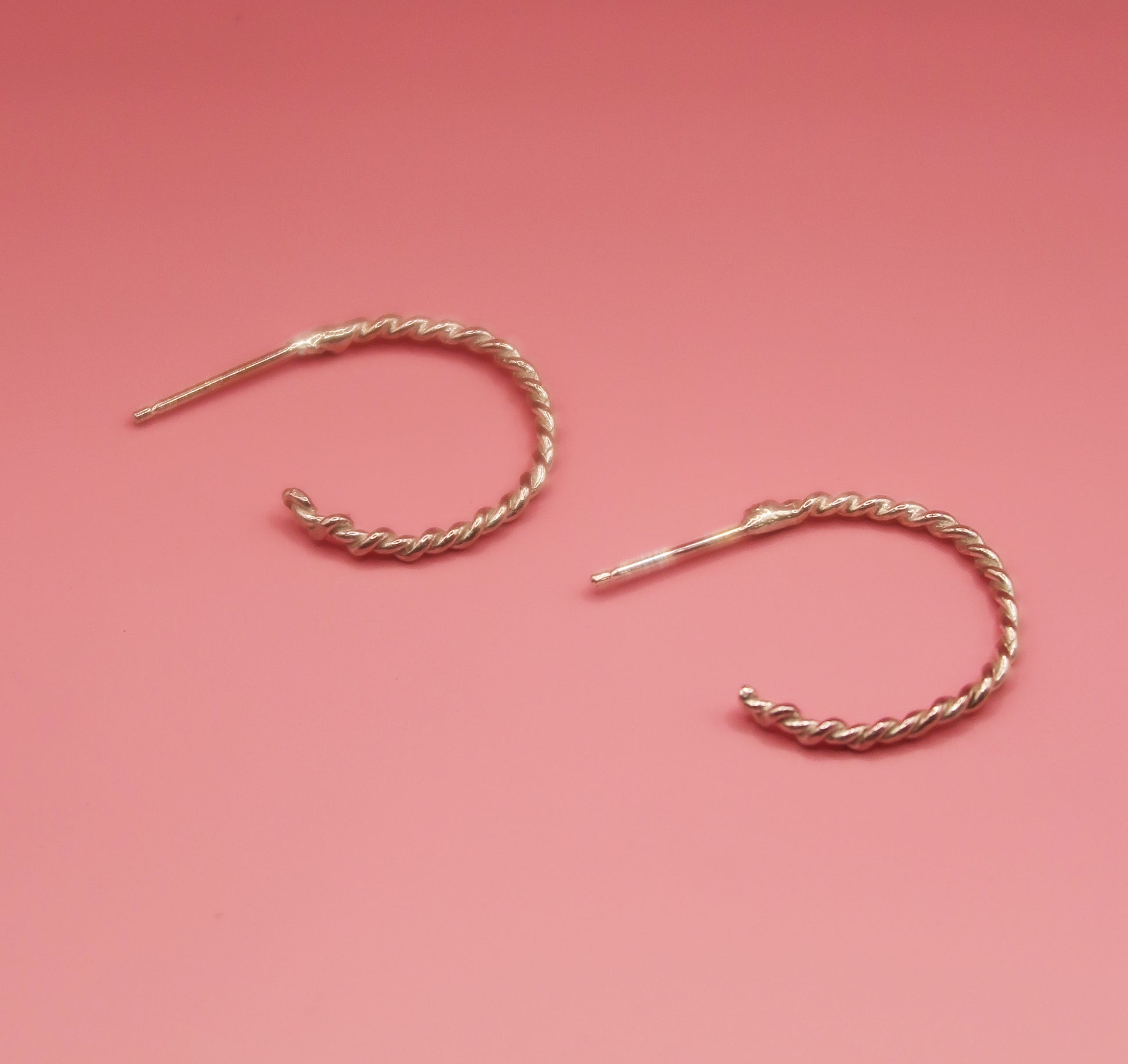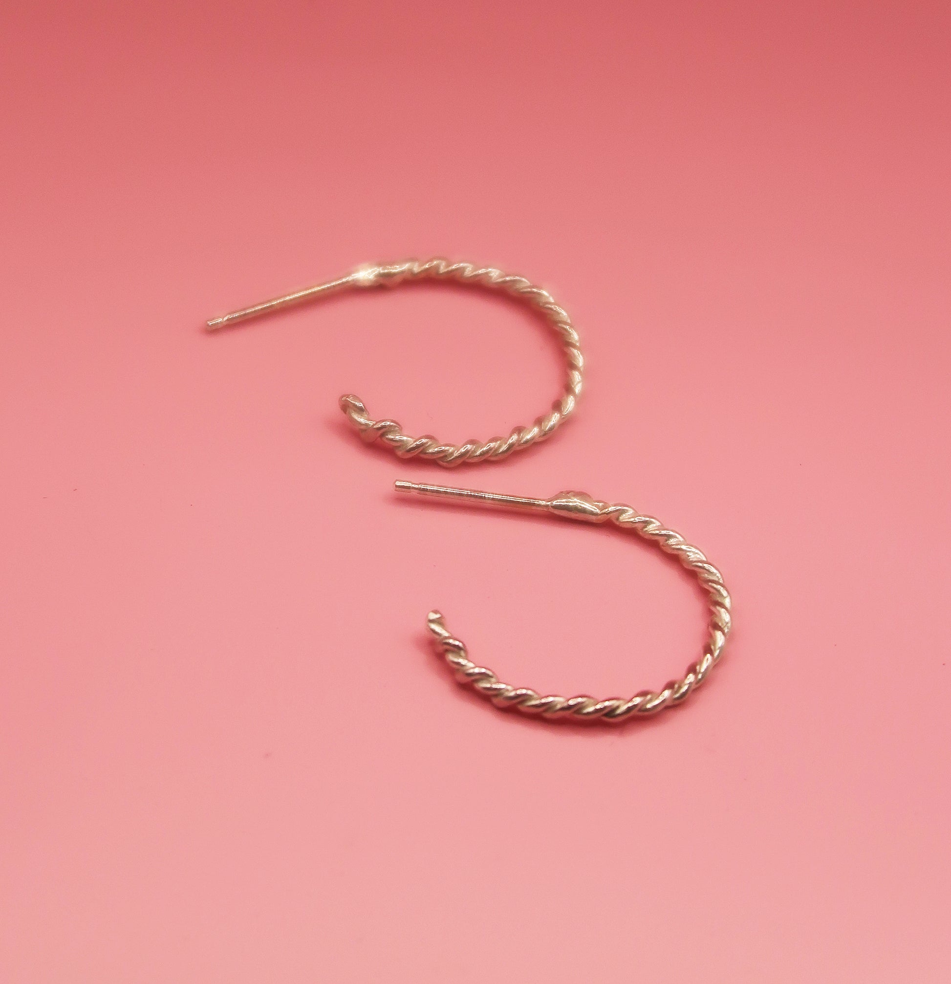 Twisted hoop earrings suitable for everyday wear. They're so lightweight and comfy and easy to dress up or down.