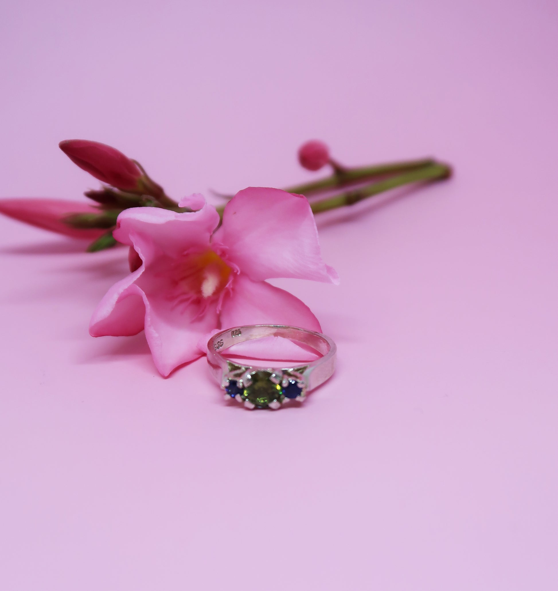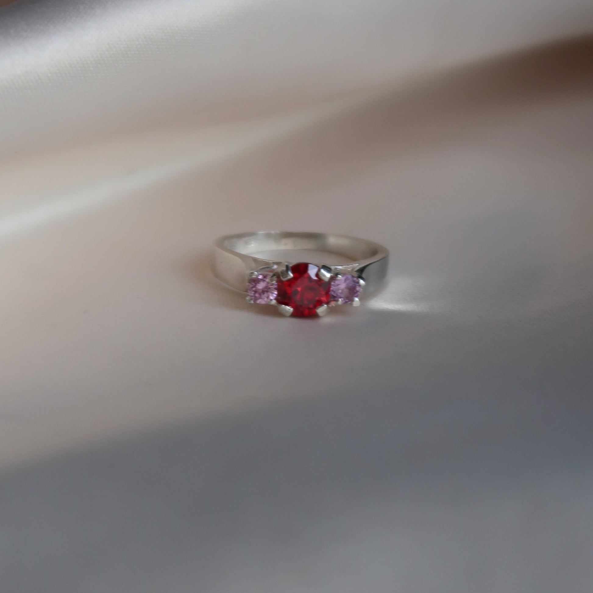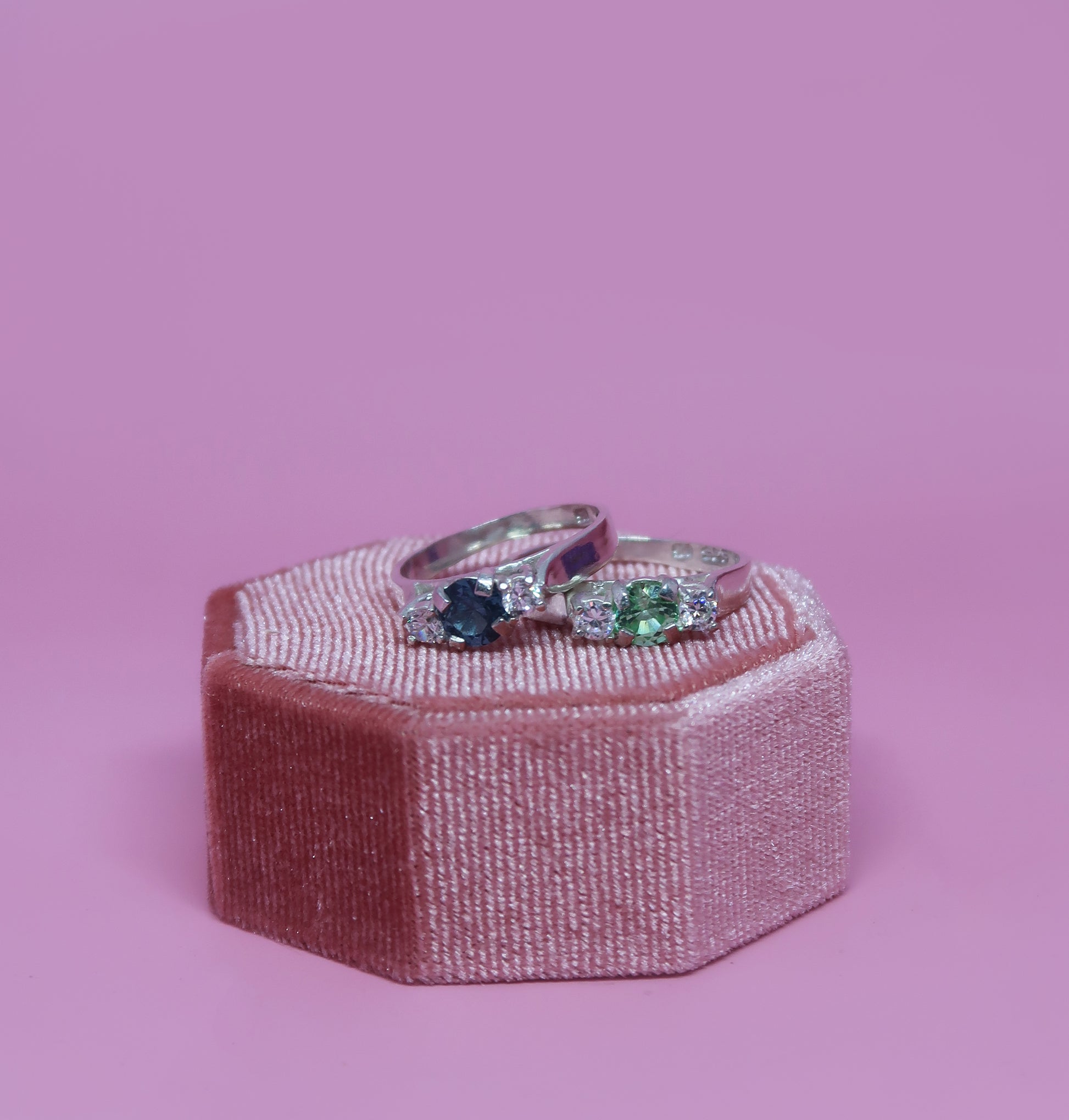 Available side stone colours are the same as the centre stone, with the addition of white cz. Please add your choice of side stones into your cart notes at checkout.