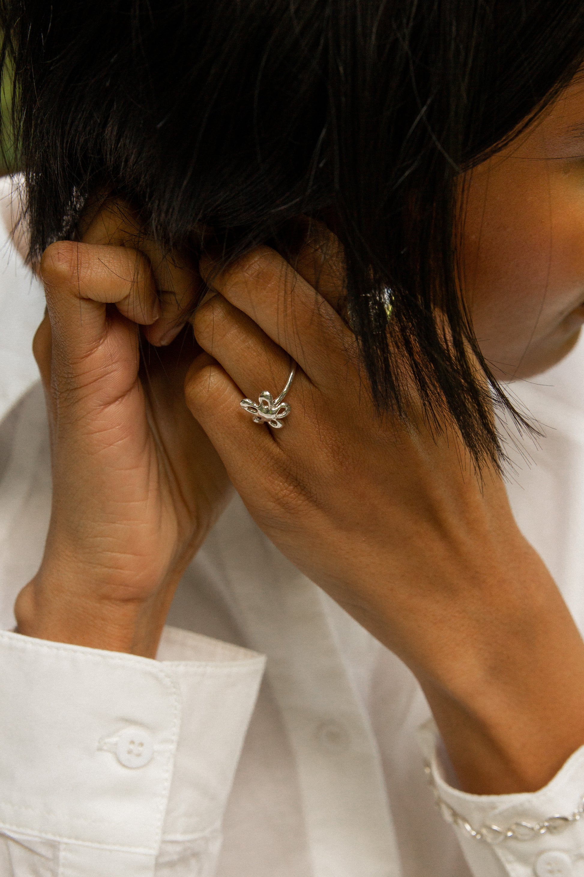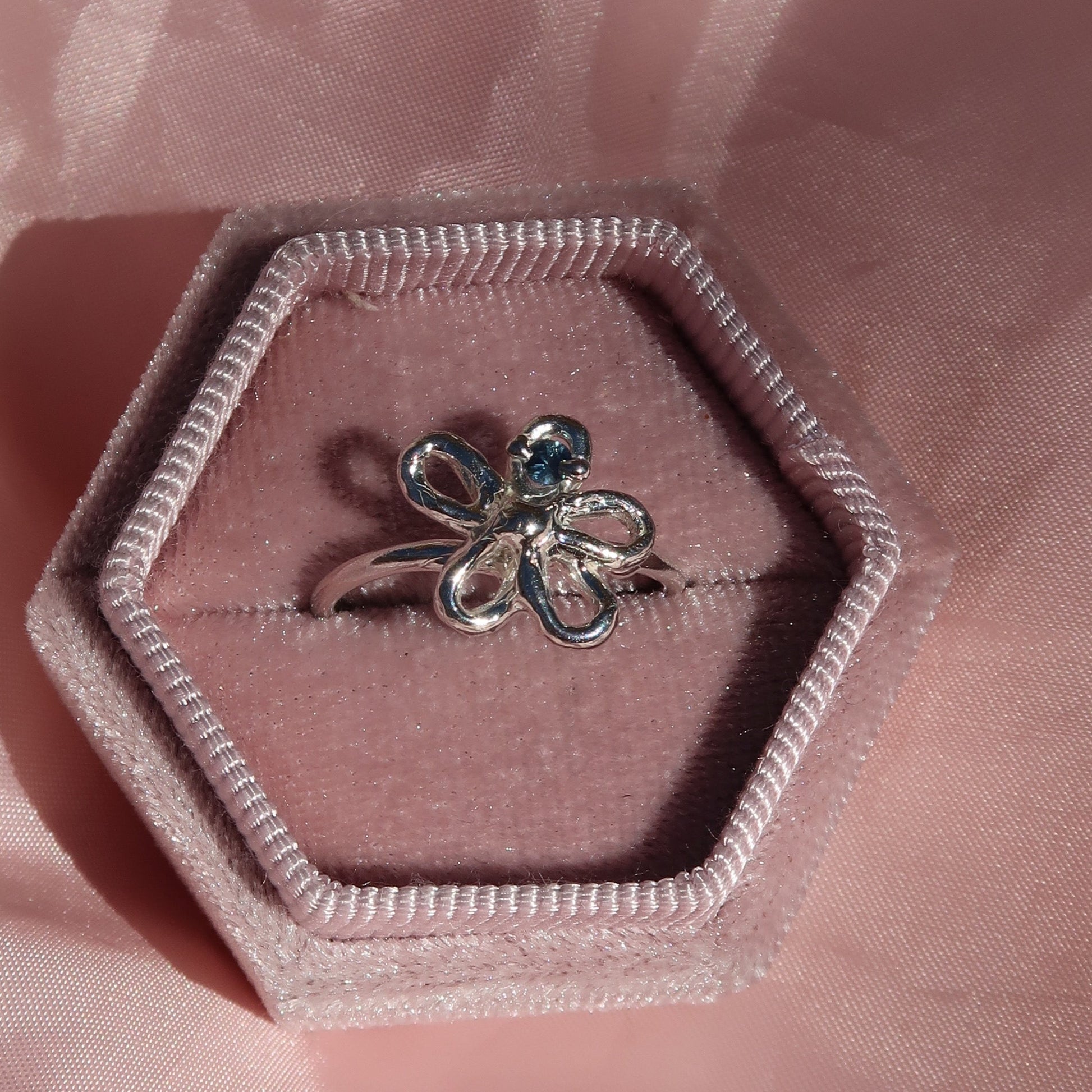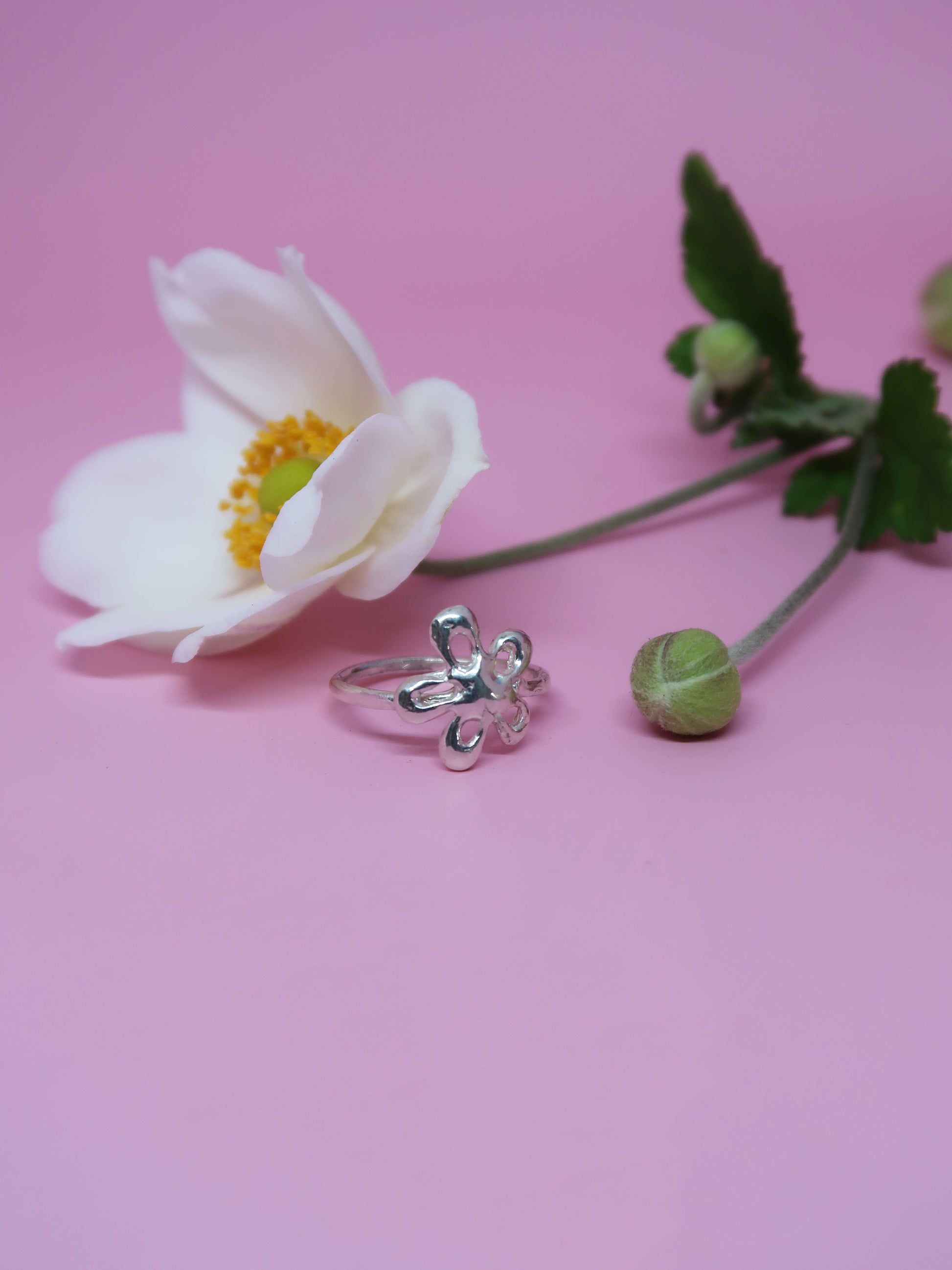 The Flirty Flower ring was one of the first pieces I made for SGS. The flower motif has always been special to me. The Flirty Flower represents nostalgia, romance, femininity and fun. The shape is simple and organic, perfect for everyday wear.