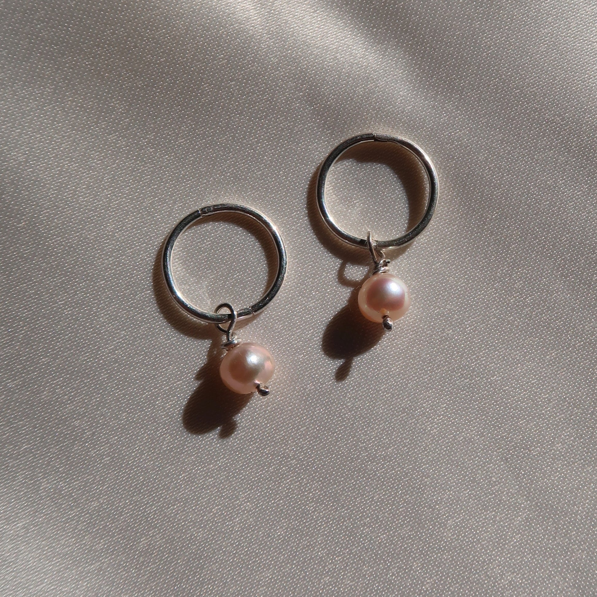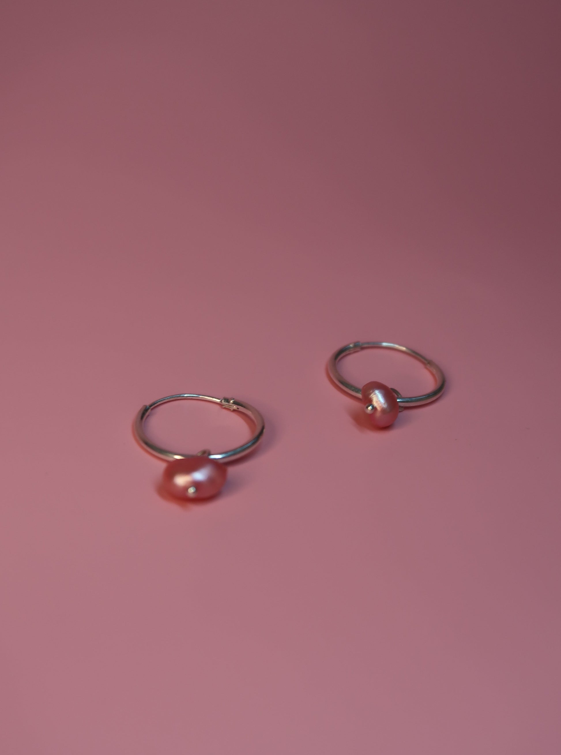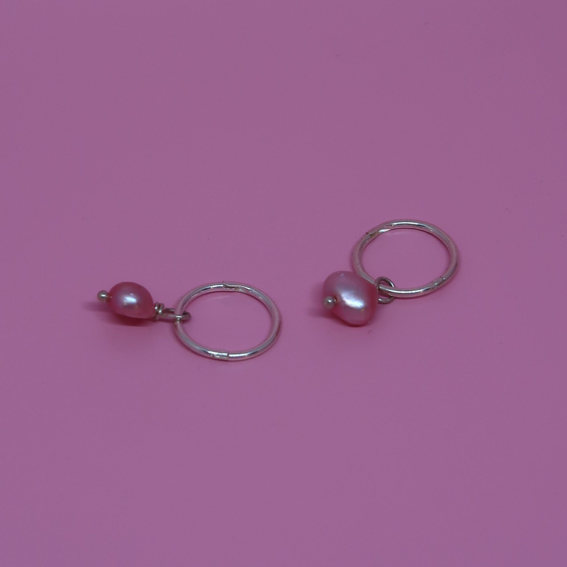 Pink freshwater pearls on 10mm sterling silver sleepers.