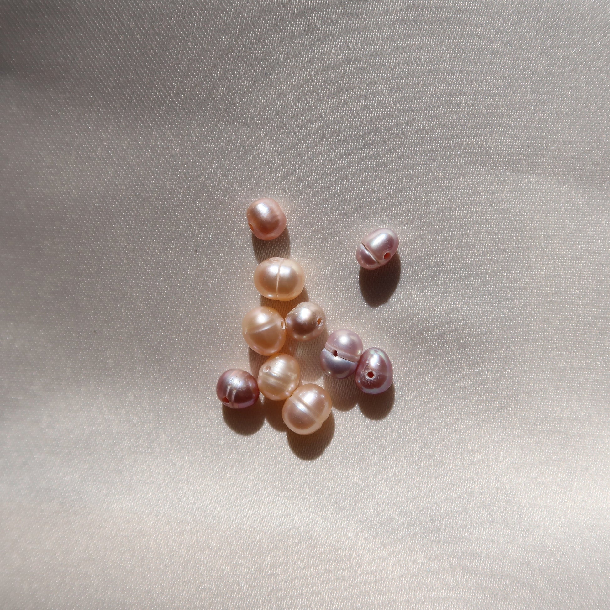 Due to the natural nature of the material, pearl shapes, sizes & colours will differ. Pinks can range from light peach to darker pinks.
