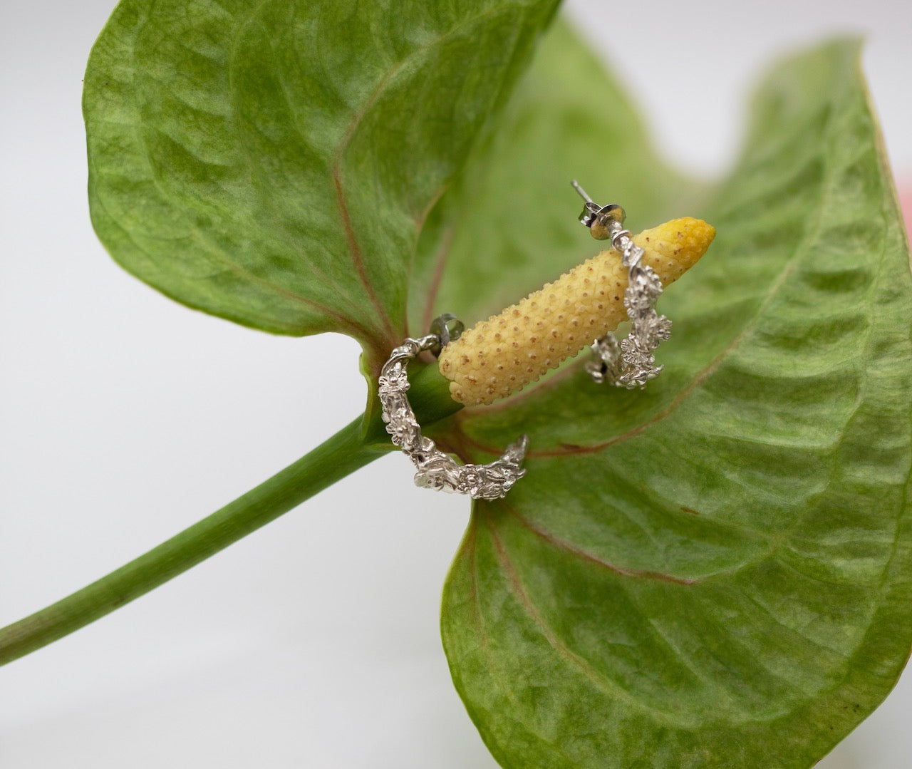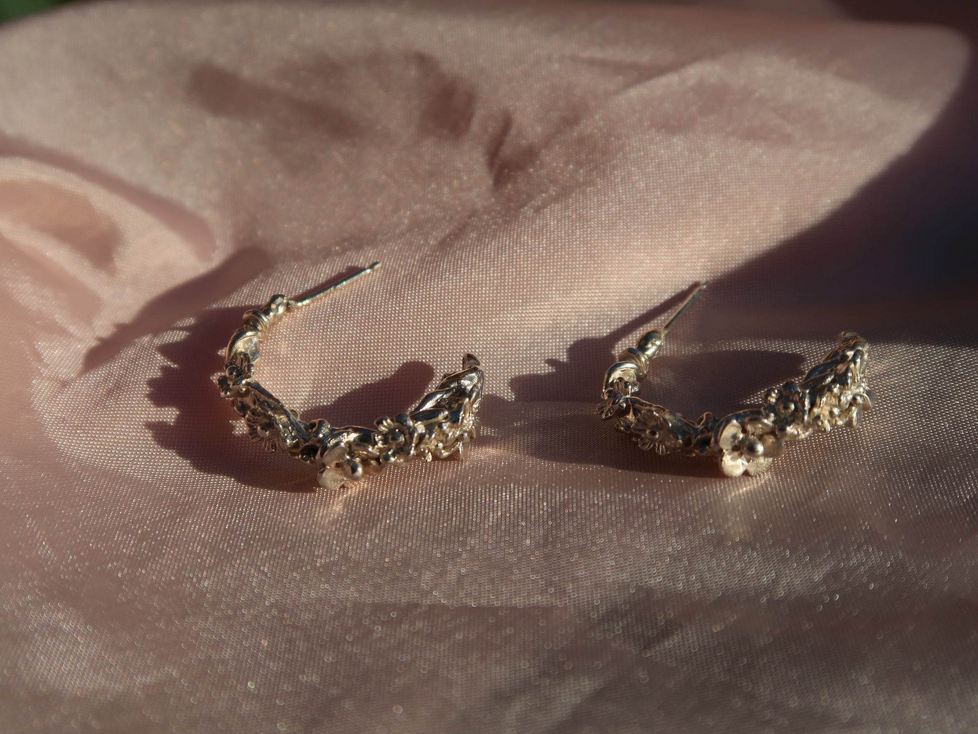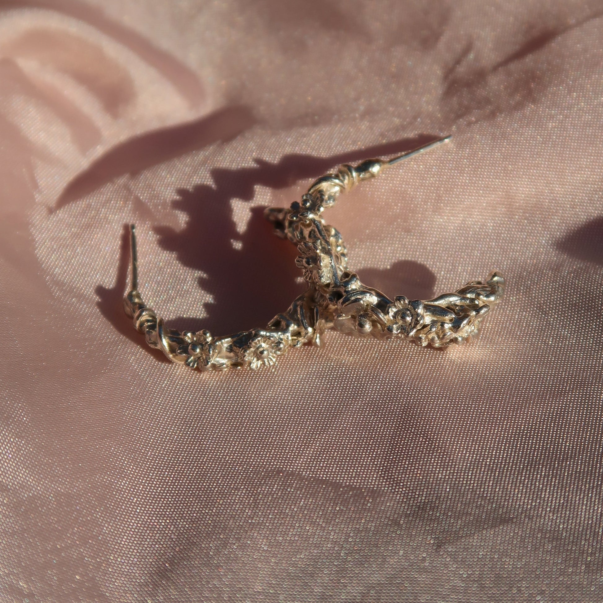 These ethereal earrings feature intricately detailed vines, leaves, flowers, and even a butterfly. With a touch of nature and a dash of fantasy, these hoops will add a touch of magic to any outfit. Embrace your inner fairy and adorn yourself with these enchanting earrings.