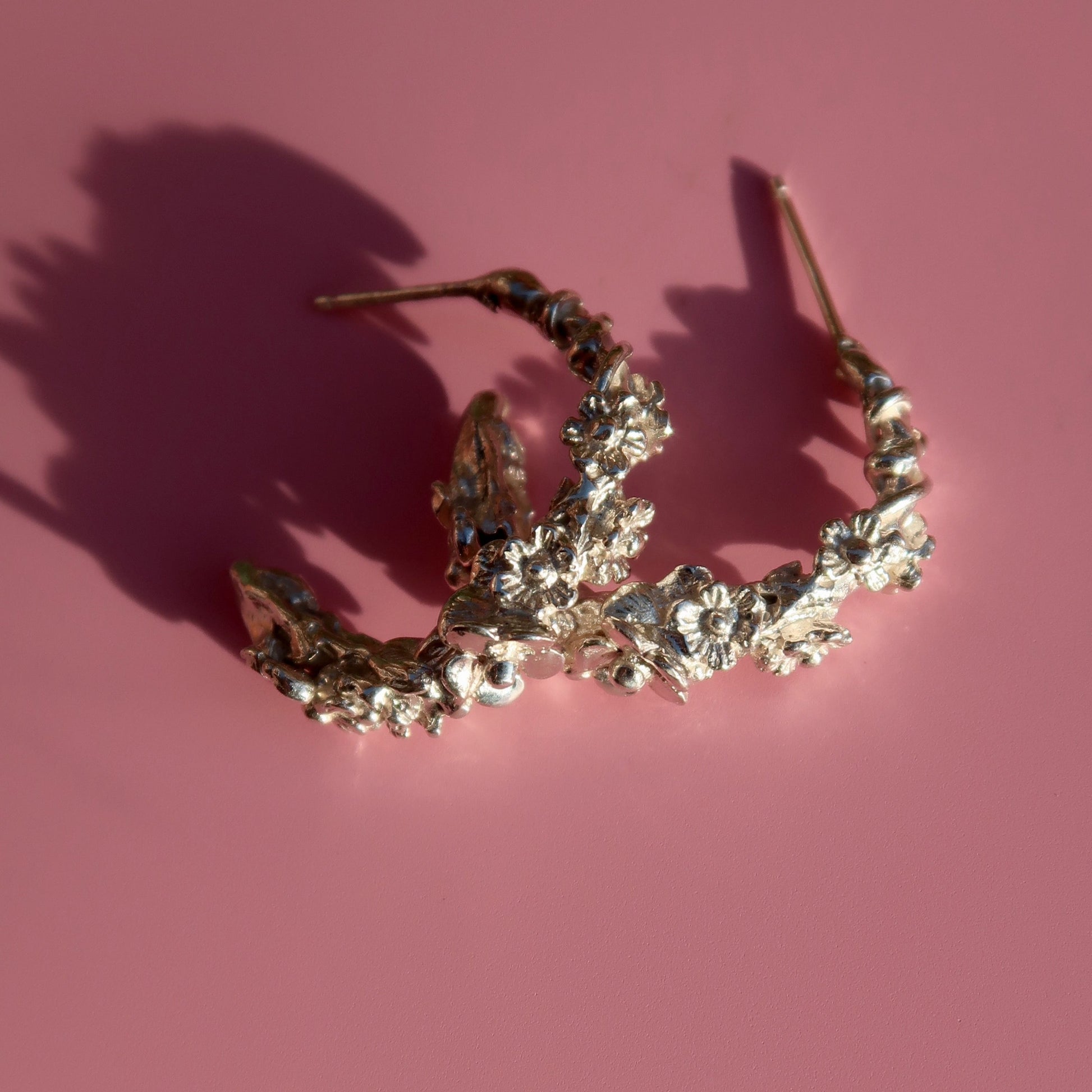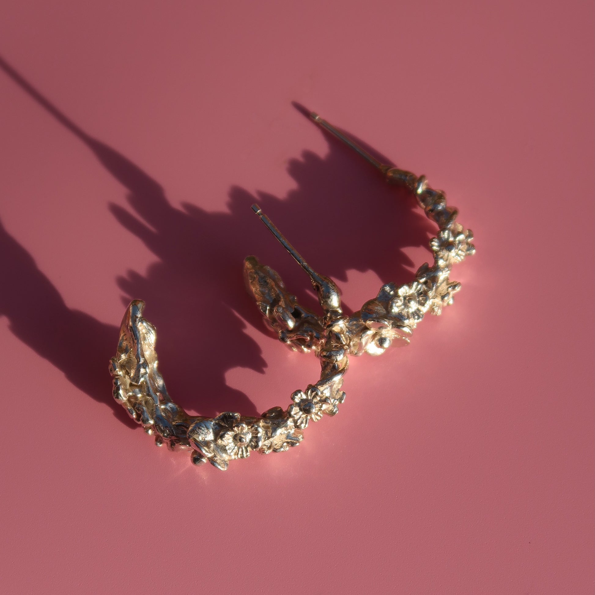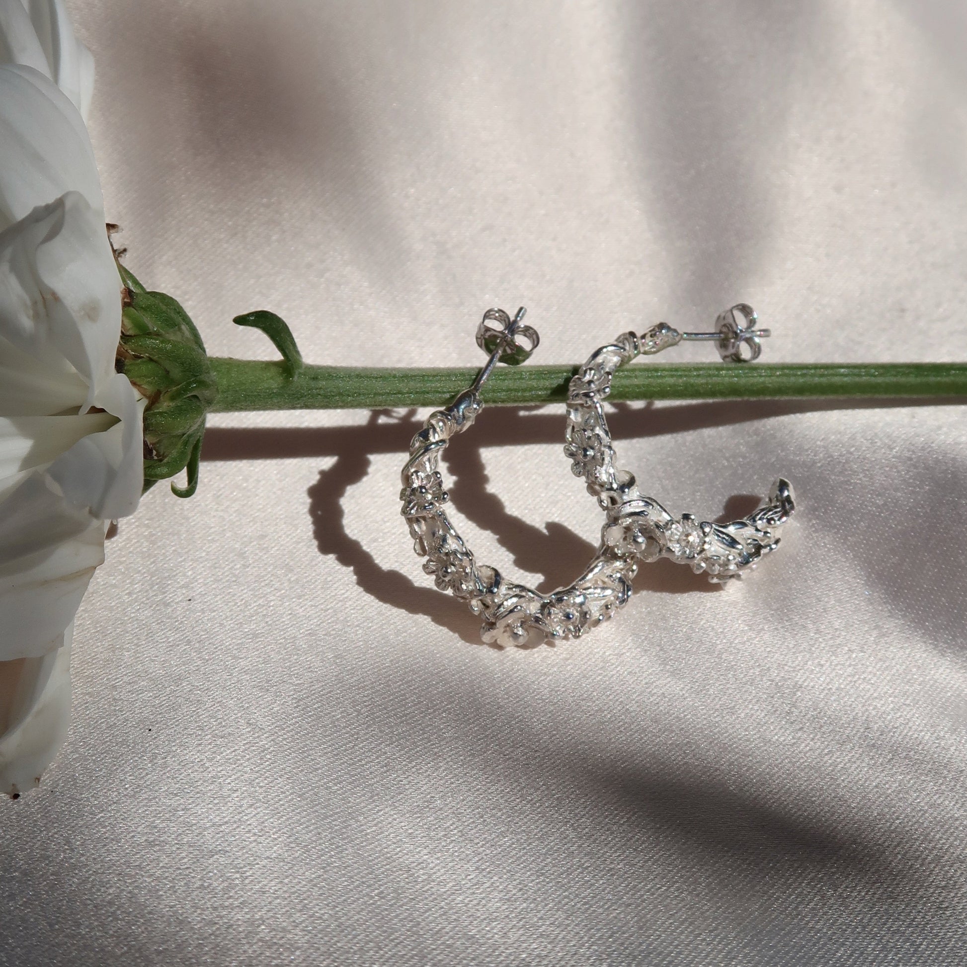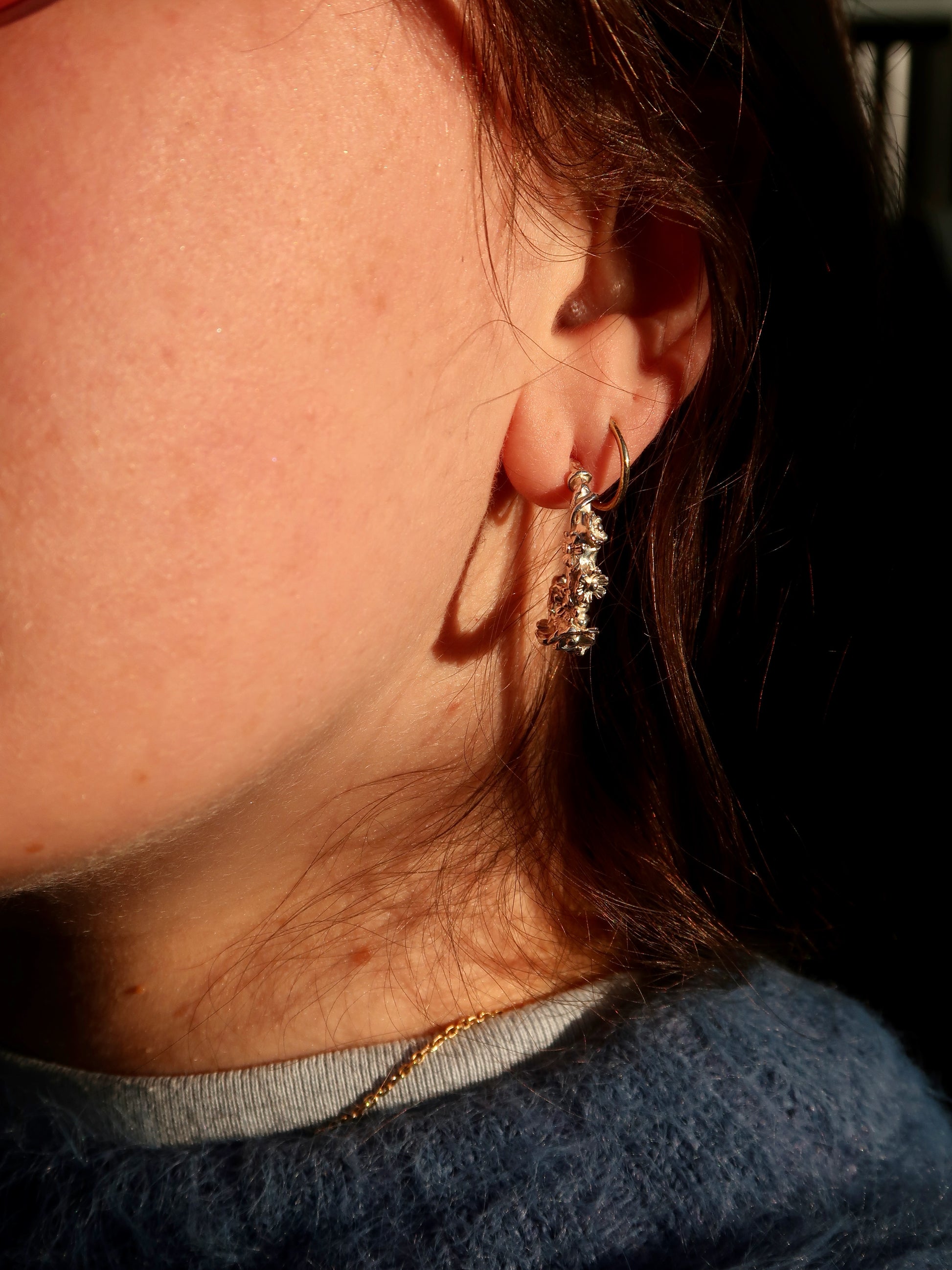 These ethereal earrings feature intricately detailed vines, leaves, flowers, and even a butterfly. With a touch of nature and a dash of fantasy, these hoops will add a touch of magic to any outfit. Embrace your inner fairy and adorn yourself with these enchanting earrings.
